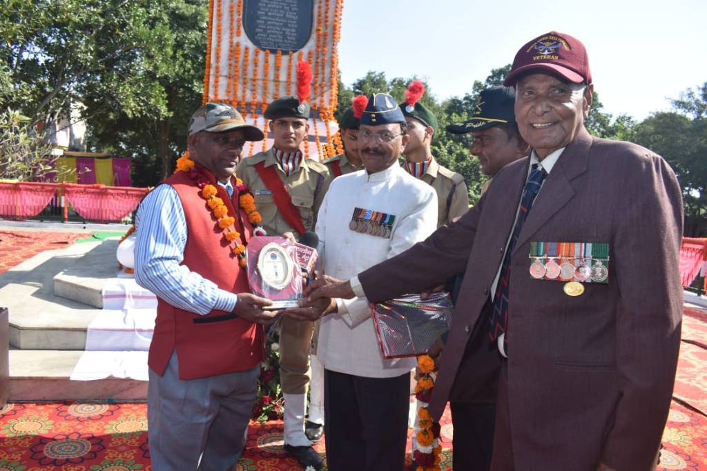 उरई। बंगलादेश युद्ध की स्मृति में प्रति वर्ष आज के दिन मनाये जाने वाले विजय दिवस का आयोजन इस वर्ष भी शुक्रवार को कुठौन्द ब्लाक के हदरूख में स्थित शहीद स्मारक परिसर में भव्य तरीके से किया गया। इस अवसर पर उक्त युद्ध व अन्य युद्धों में शहीद भारतीय सैनिकों की धर्म पत्नियों का सम्मान किया गया । कार्यक्रम में मुख्य अतिथि के रूप में पहुंचे थल सेना के झांसी स्टेशन के एडम कमाण्डेन्ट के प्रतिनिधि कर्नल अमित इस्सर ने कहा कि हमारे जांबाज सैनिक सीमाओं की रक्षाओं के लिये शत्रुओं के दांत खटटे करते हुये अपने जीवन का बलिदान तक कर देते हैं। इसलिये वे हमारे लिये सर्वोच्च मान , सम्मान और श्रद्धा के पात्र हैं। कार्यक्रम का आयोजन पूर्व सैनिक परिषद ने किया था । परिषद के संस्थापक प्रहलाद सिंह ने कहा कि 1971 के पहले देश में बलिदानी सैनिकों को श्रद्धार्पण का कार्यक्रम आयोजित नहीं किया जाता था जबकि प्राथमिकता के आधार पर सरकार को यह कर्तव्य निभाना चाहिये।