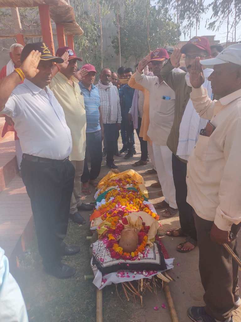 खबर मिलने पर नगर में रह रहे पूर्व सैनिकों ने उनके आवास पर पहुंच कर राष्ट्र ध्वज में उनके पार्थिव शरीर को लपेट कर उन्हें अंतिम सलामी दी। इस अवसर पर कैप्टन अखिलेश नगाइच, सिपाही श्याम सिंह भदौरिया, हवलदार सुनील विश्वकर्मा, सूबेदार रामलखन सिंह, हवलदार सीताराम कुशवाहा, सूबेदार मेजर शिवराम सिंह कुशवाहा, नायब सूबेदार रामकृपाल सिंह, इस्पेक्टर बाल मुकुन्द सिंह सेंगर, सिपाही राघवेन्द्र सिंह सेंगर, सूबेदार उदय पाल सिंह, धर्मगुरू शत्रुघन सिंह सेंगर, हवलदार रविन्द्र सिंह राठौर, सिंपाही देवेन्द्र सिंह यादव और हवलदार गोविन्द सिंह चैहान सहित बडी संख्या में पूर्व सैनिक उपस्थित थे।
