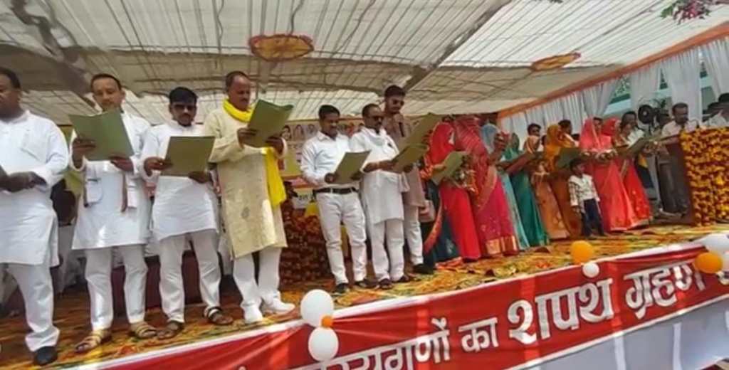 इस बार नगरपालिका परिषद के अध्यक्ष एवं सभासदों का शपथ ग्रहण समारोह बेहद ही निराले अन्दाज में सम्पन्न हुआ जिसमें नवनिर्वाचित अध्यक्ष अरविन्द यादव तथा 25 सभासदो को उपजिलाधिकारी के0 के0 सिंह द्वारा पद और गोपनीयता की शपथ दिलाई गई जिसमें पद के साथ सविँधान एवं जनता के प्रति उत्तरदायित्व की भी कसम ली गई। इसके अलावा इस शपथग्रहण में साधु सन्तों की मौजूदगी एवं श्री बांके बिहारी की अध्यक्षता एक मिसाल बन गई है। कार्यक्रम के दौरान महन्त सिद्ध रामदास महाराज ठढेश्वरी मंदिर, महन्त जमुना दास वनखण्डी देवी, महन्त मनमोहन दास गुजरात के अलावा बडी संख्या में सन्त मौजूद रहे तो इस कार्यक्रम में समाजवादी पार्टी के पूर्व जिलाध्यक्ष वीरपाल सिह यादव,विधायक प्रतिनिधि आशीष चतुर्वेदी,चौधरी विष्णु पाल सिंह, शिववालक यादव,इरशाद खा, पूर्वपालिका अध्यक्ष कमर अहमद, बार एसोसियेशन के अध्यक्ष जयकिशोर कुलश्रेष्ठ,पूर्व बारसंघ अध्यक्ष रामकुमार तिवारी,जयवीर सिंह,राजेश गुप्ता , पालिका परिषद के अधिशासी अधिकारी वेदप्रकाश यादव,सफाई निरीक्षक सुनील राजपूत,आरआई राजभवन सिंह ,लिपिक हरभूषण चौहान के अलावा बडी संख्या में नगर की जनता भी मौजूद रही। इस मौके पर अव्यवस्था न हो इसके लिए भारी संख्या में पुलिस बल भी तैनात किया गया था |